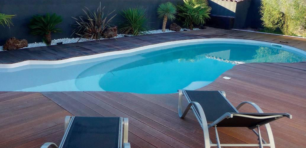 Una piscina con una gran zona de playa en la que poder tumbarte o jugar con tus hijos de forma segura