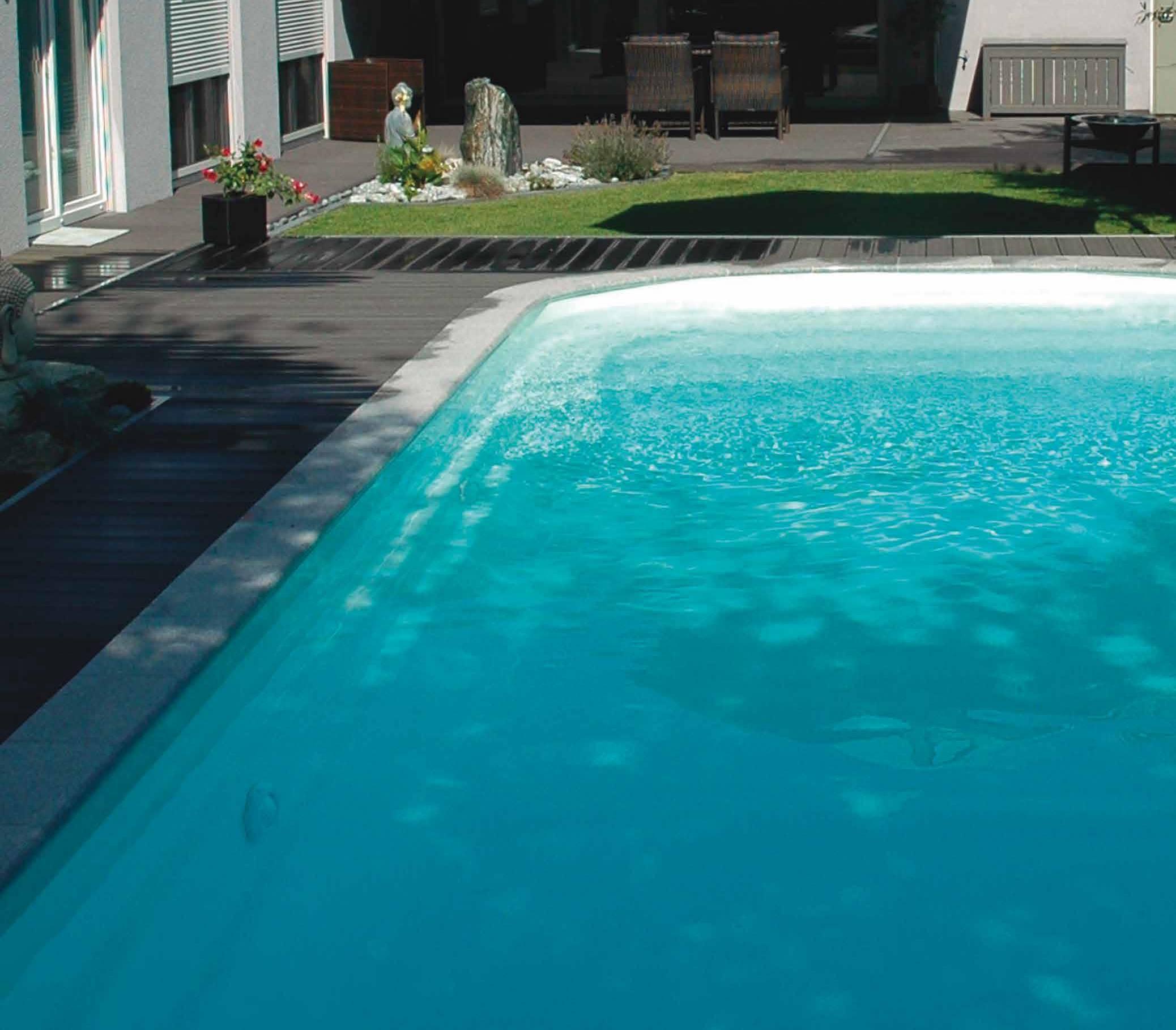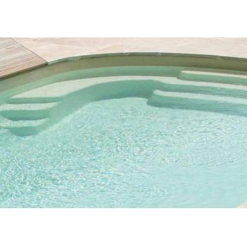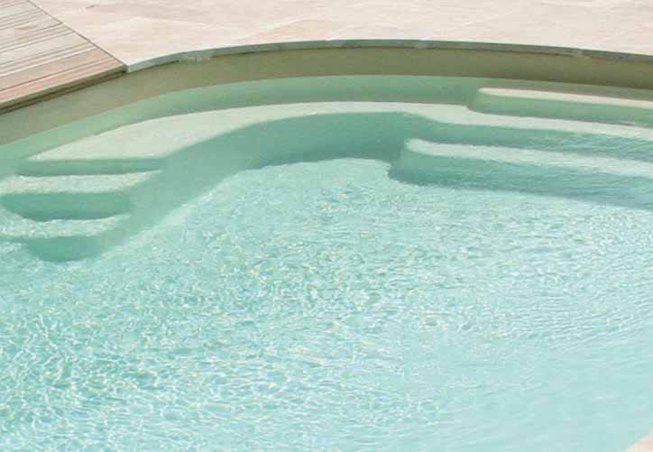 La zona de entrada y salida de la piscina esta pensada como lugar en el que relajarse, sin necesidad de meterse en el agua. Pueden ser en fondo plano o inclinado.